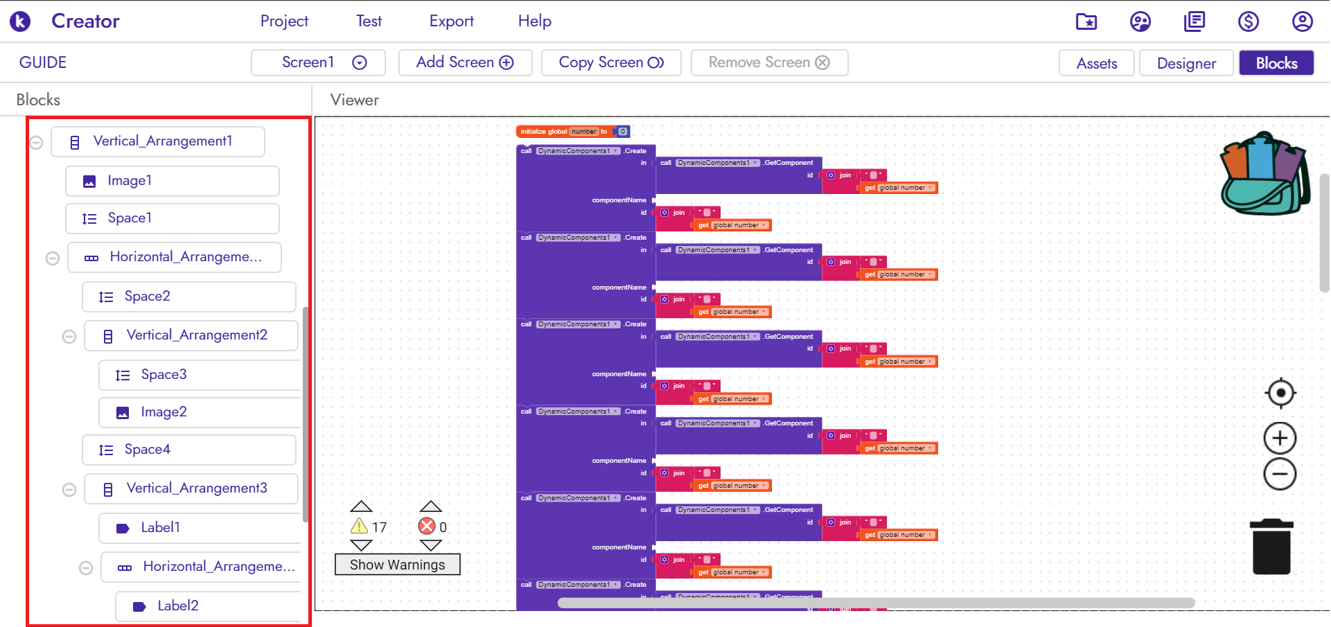 On Left Hand Side of Blocks Screen, You can See All the Components you Used to Create the Static Design -