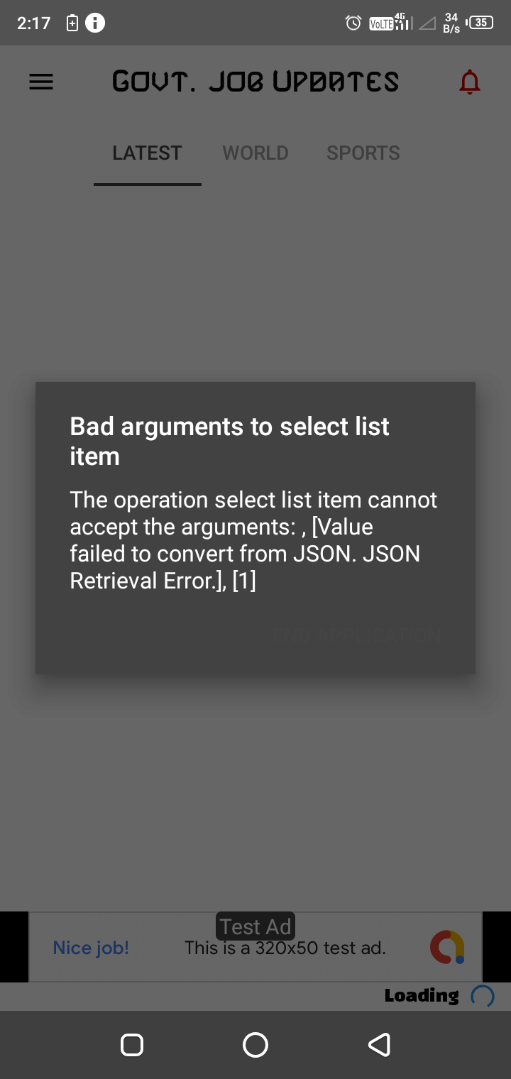 Now coming to point, i worked on it yesterday night, it wasnt working. I tried in morning, content was trying to come in app and i came to know same when app notification was showing about articles, however app is blank and shows following error
