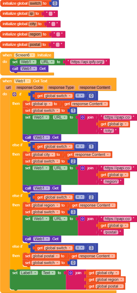 Use the location sensor getCurrentAdderess block on screen initialize:
