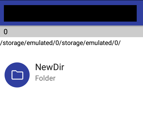 When gave the command create new directory(“/storage/emulated/0/NewDir”), that was created a folder, located at “/storage/emulated/0/storage/emulated/0/NewDir”.
