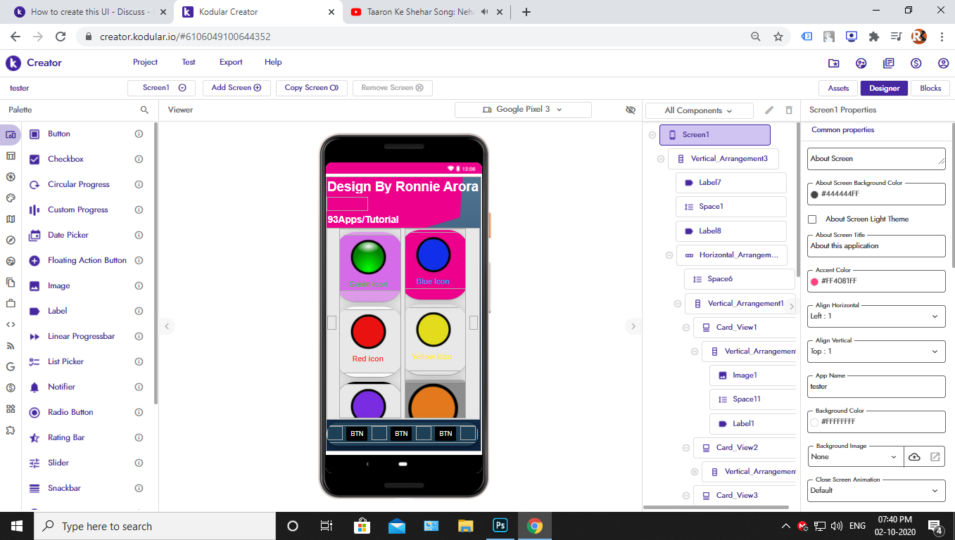 And for the screen background image, it can be created with any image editing program like pixel lab,photoshop,etc.May be they can be created with kodular components, but they will be harder.