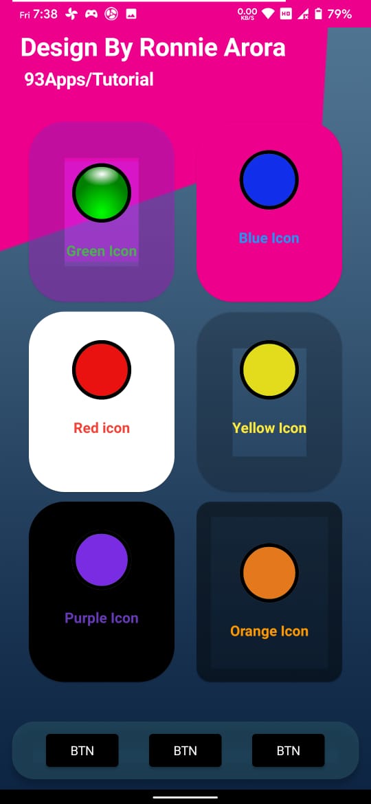 Coming to the cards, those cards are just a transparent card with icon on it and you can achieve them easily.