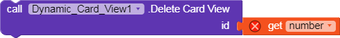 Before using the for loop that you use for creating the dynamic card views with. Use another for each number from 1 to ( the length of your list) by 1 to delete the card views, then use this block to delete the card view with the local number variable :