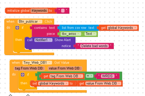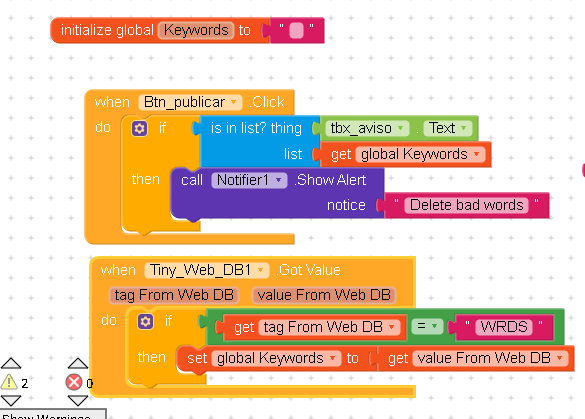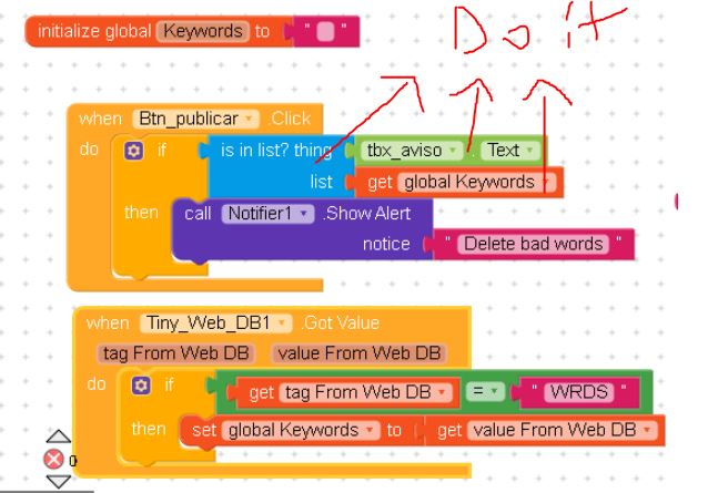 I have a problem, I try to store a list of words that I want to detect within a textbox (avoid rude words and warn them that it cannot be used), the thing is that it does not work correctly for me.