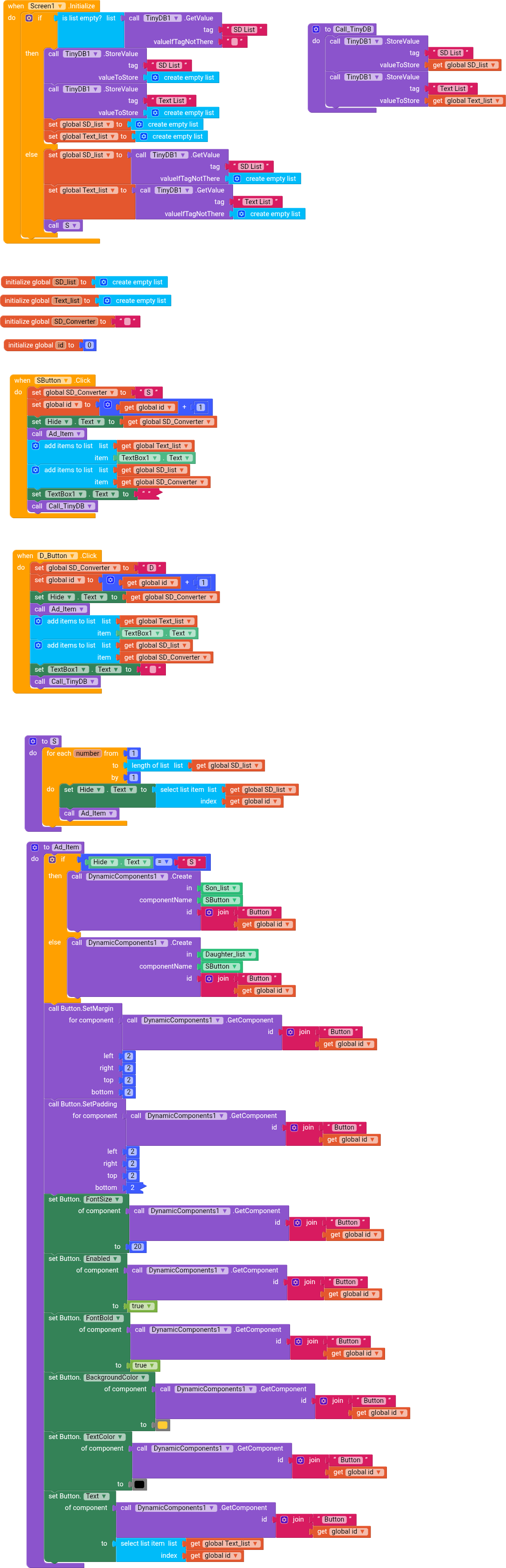 When the screen initializes, a list should be created in different arrangements using SD Converter variables. When the user clicks the Add Son button, a new item should be created in the son layout. When the user clicks the Add Daughter button, a new item should be created in the daughter layout.