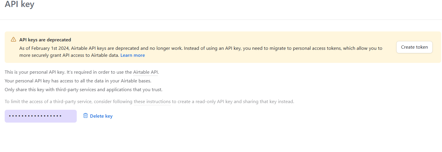 I want to use airtable api key and old is not working, how to use new api key.