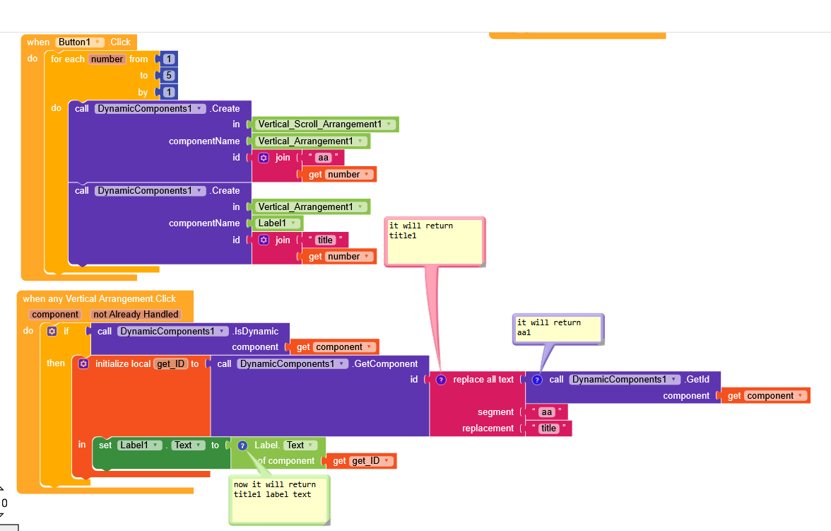 now if you check there is another block Get label text by id now use ids to get the specific text of label