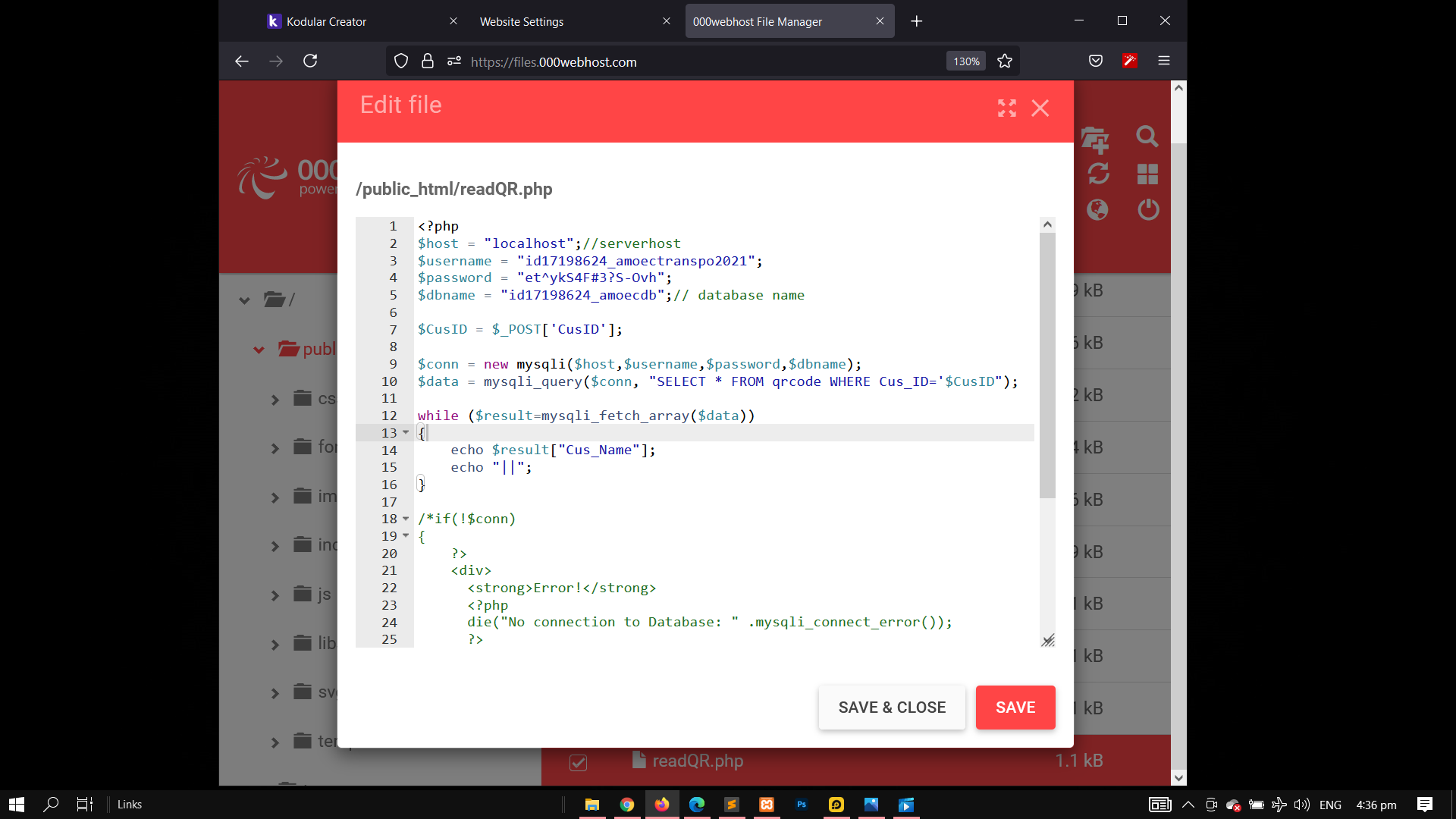 I tried if else block because I am trying to compare the label “Scanned_Id” to the Cus_ID in database in order to get the Cus_Name but it turned out not so well lol