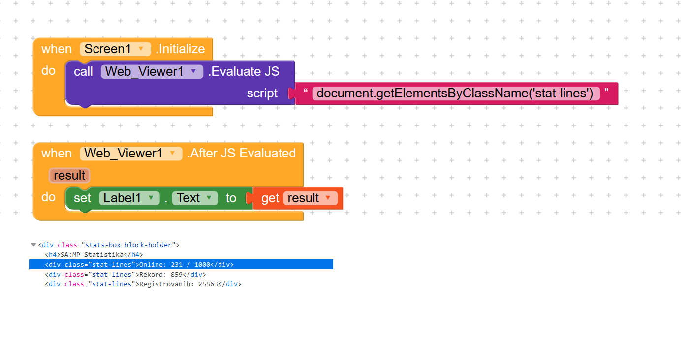 For example i wonna get this data (Online: 217 / 1000) , to be in label in my app