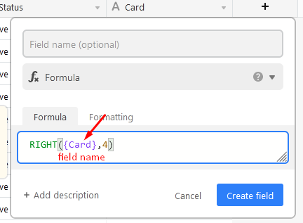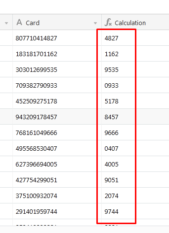 Or another approch Next to the card field, just create another field with fomula and enter this formula