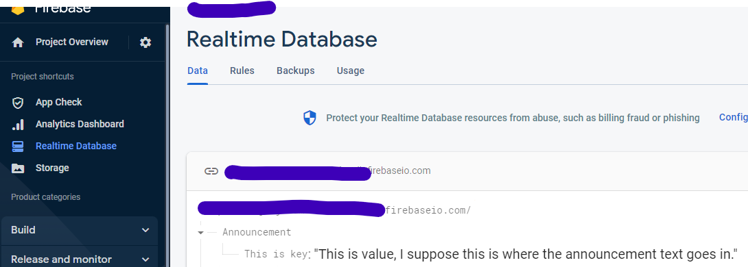 I am looking for a way to show message from the Firebase to a label in the app. This label will show announcement that can be changed using the value in Firebase.
