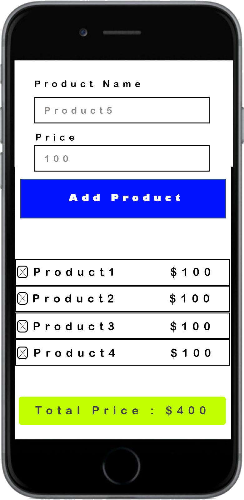 I want to get total amount from list when a user enters a price i want to calculate all list and get total sum and i want the user to be able to delete items on the list