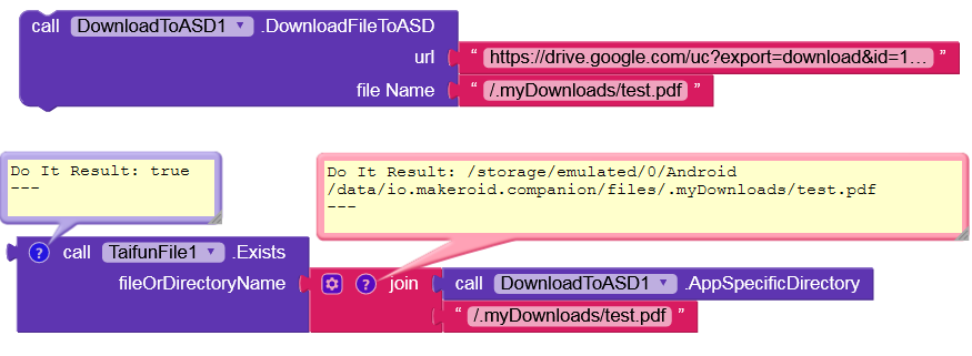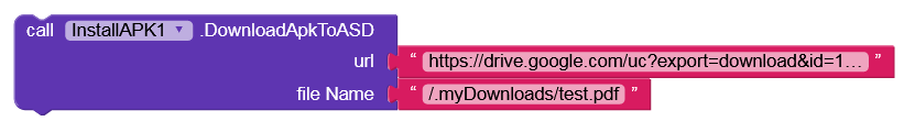 This way the pdf file is downloaded directly to a hidden folder (→ myDownloads) in the ASD without WRITE_EXTERNAL_STORAGE permission. This folder (myDownloads) can only be accessed by your app and is automatically deleted when the app is uninstalled.