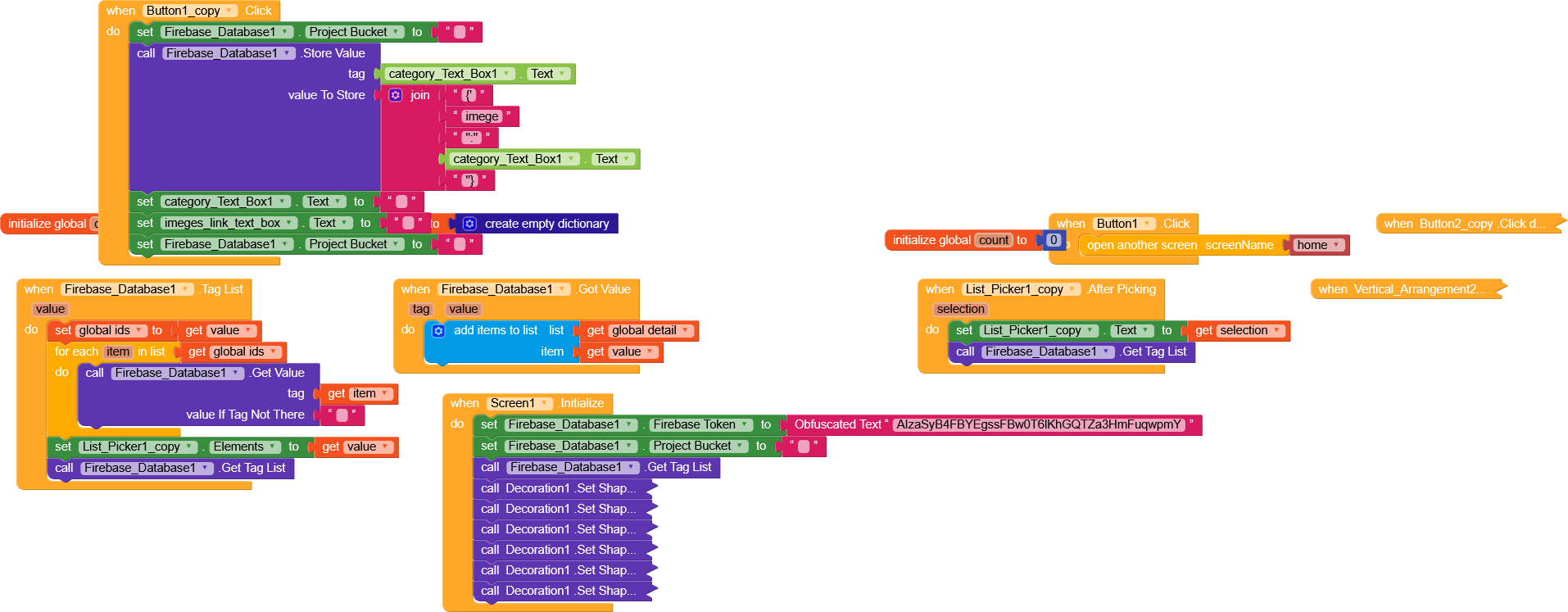 I have a problem with the button event in screen 1, when I add a link and text in the text box, I want to see this structure in Firebase,