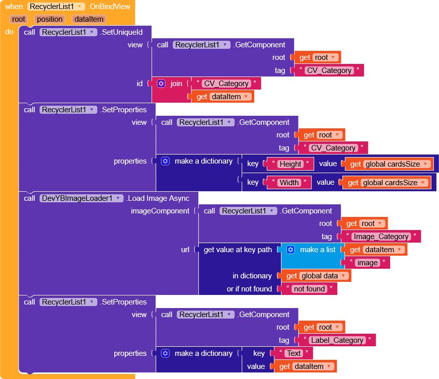 then we set RecyclerList.Data with the keys of data (Category1,Category2).
