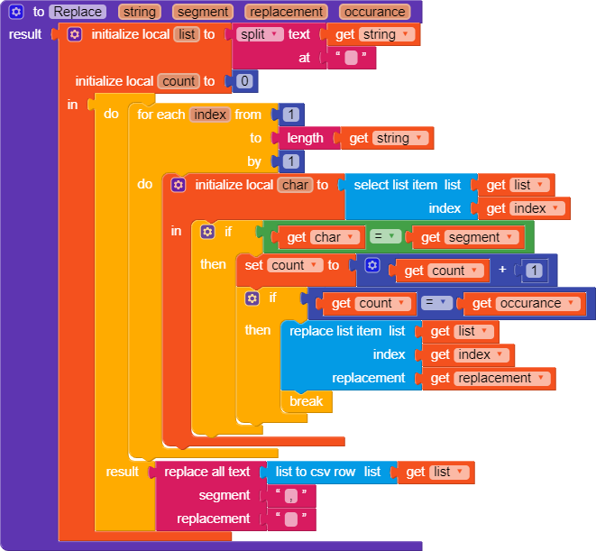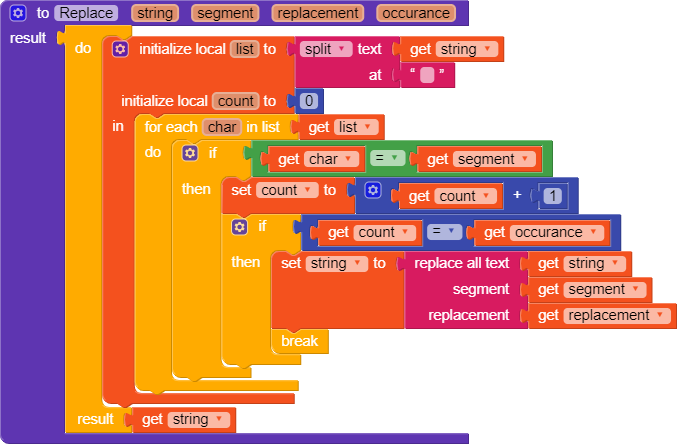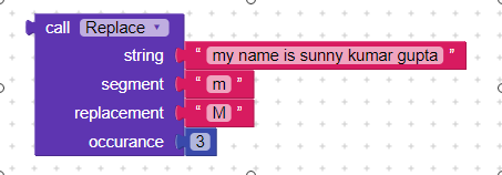 What are the inputs for “string”,“segment”,“replacement” and “occurance”?