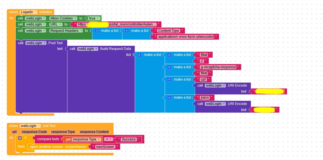 Well, to be very clear, I made a login screen that sends a “POST” method to a third party login site, it works fine, everything returns normal.