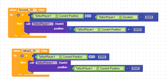To forward 6 seconds, you have to tell the player to start playing music from Instant Position + 6000 But 6s can only be forwarded if 6s is left. For example, if only a second is left to finish the music, 6 seconds cant be forwarded so if-then block is used.