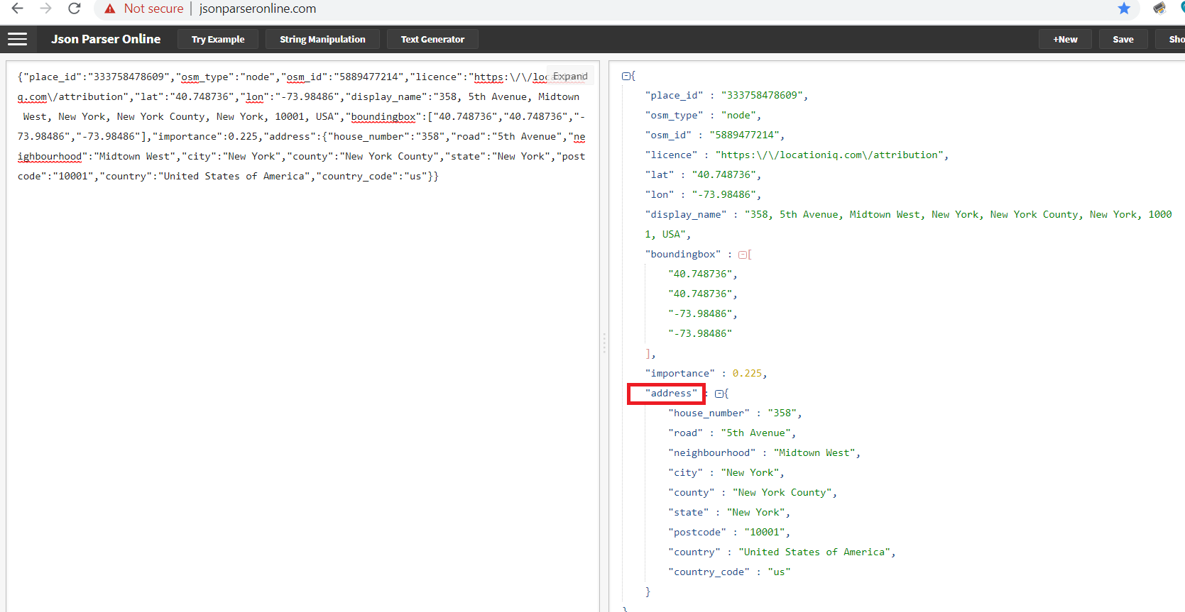 So you have from that json string to choose the information that you want to call to your label . So when web GET text to I choose from “address” to call specific values