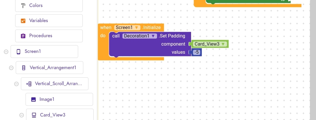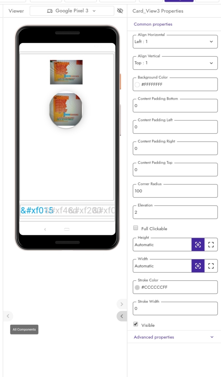 Then added an image and a label component inside card view