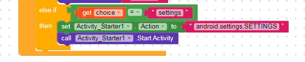 i have two activities apps but they cant show internet settings and but they show all settings