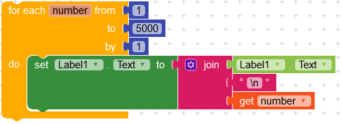 How to print all 5000 numbers by scrooling the text in Label1?