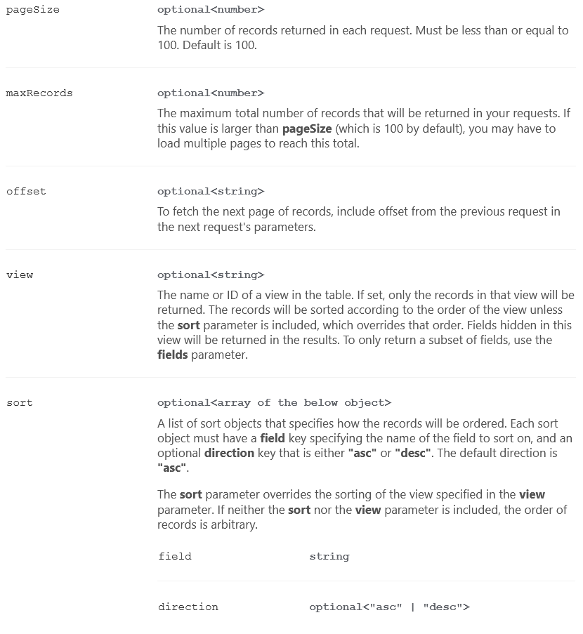 OK, I get it. Thanks!!! But how can I to set the Airtable Query Parameteres’s ??