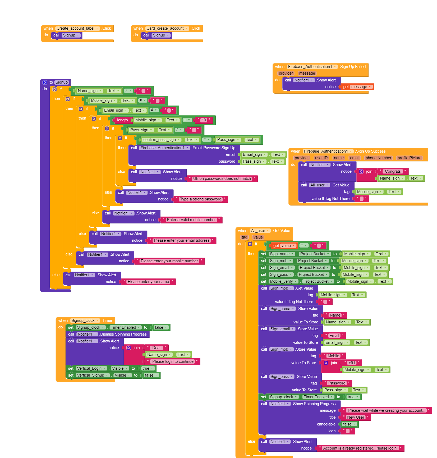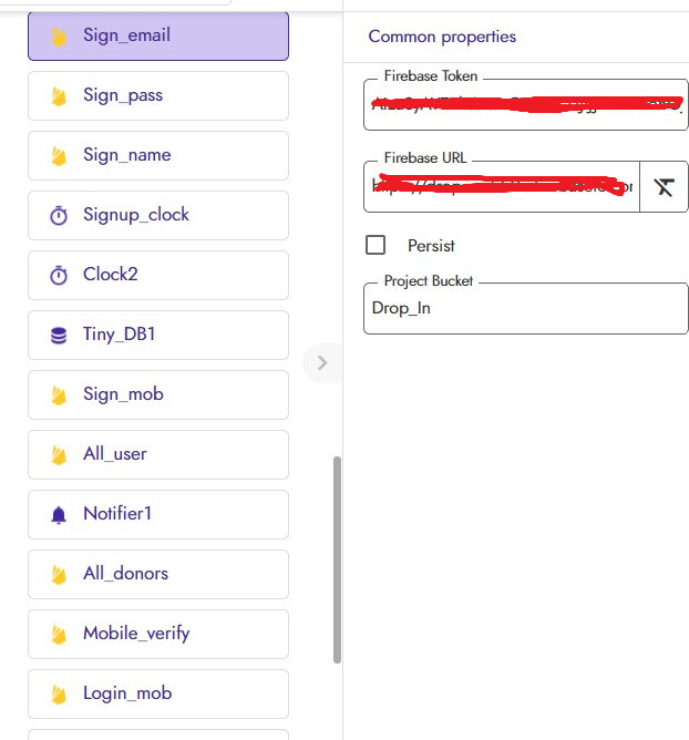 But when I calling the data from firebase, it doesn’t work very well. I am using only one screen as signup and login with the use of 2 Vertical arrangements. the project bucket is “AbsoluteUsers” and the tag is the user’s phone number.