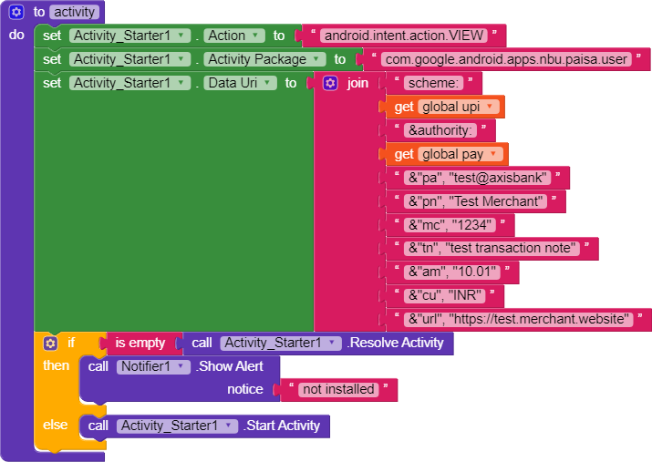 .appendQueryParameter(“pa”, “test@axisbank”)