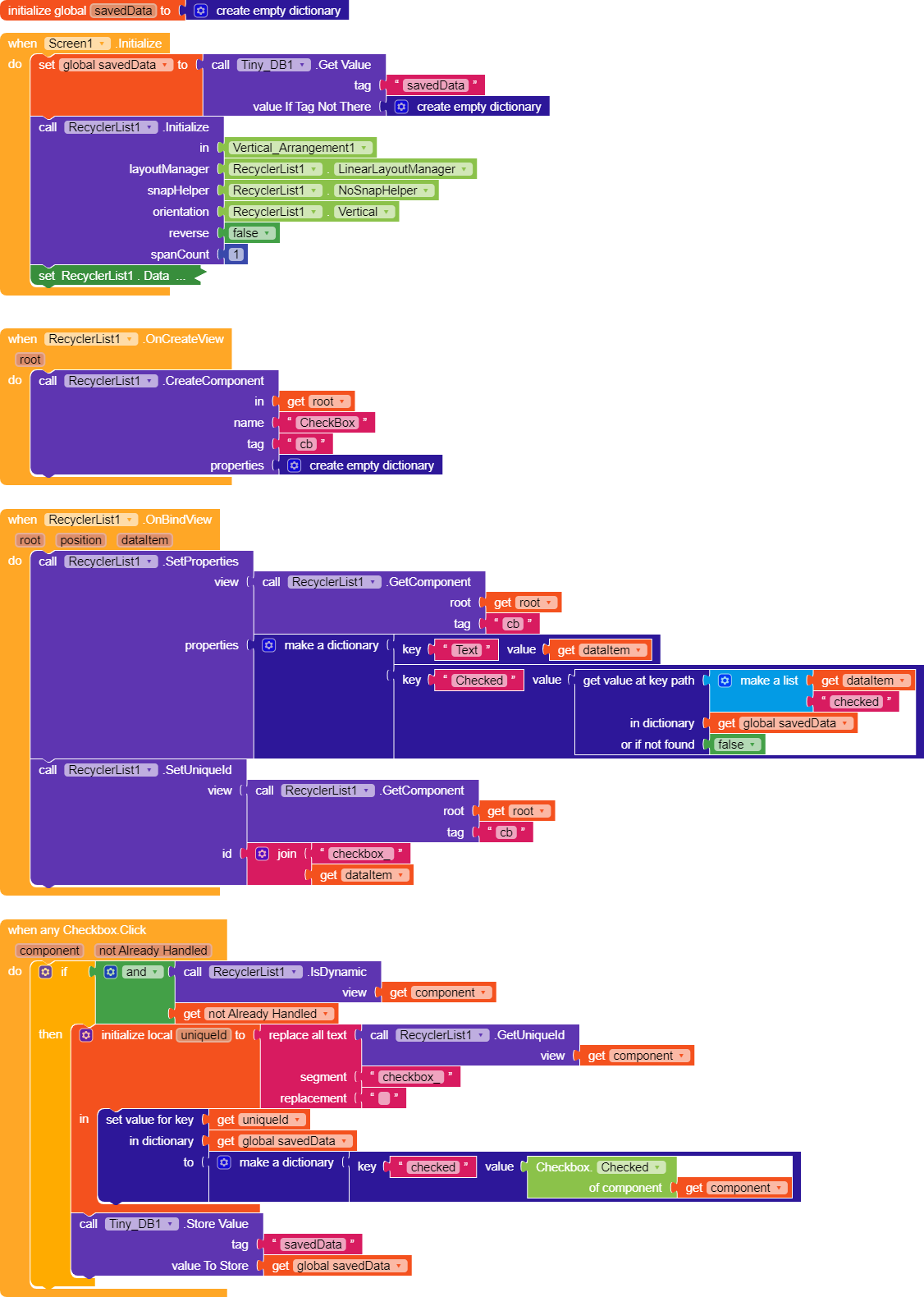 The WhenAny part is very similar for both RecyclerList and DynamicComponents, and I believe it’s the key part, together with generating the elements while retrieving the values from savedData.