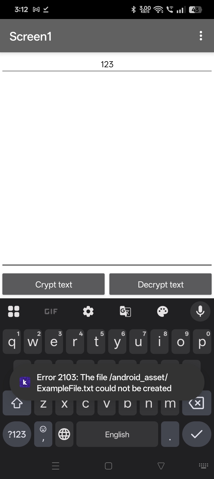 did you modify anything in the file I sent you or did you simply try to write and encrypt it?