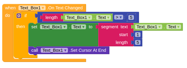 This will look at a changing textbox so when you are entering text. If it is longer then 5 characters it will just display the first five characters and put the cursor at the end.