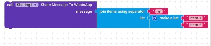 I want to share a list in text format to whatsapp which I had created in global create empty list.