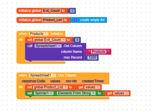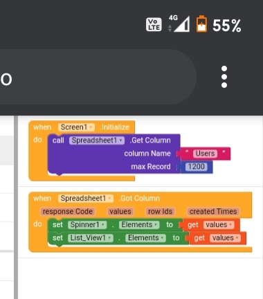 But i am facing some problem with getting column data from spreadsheet to show that into spinner list.