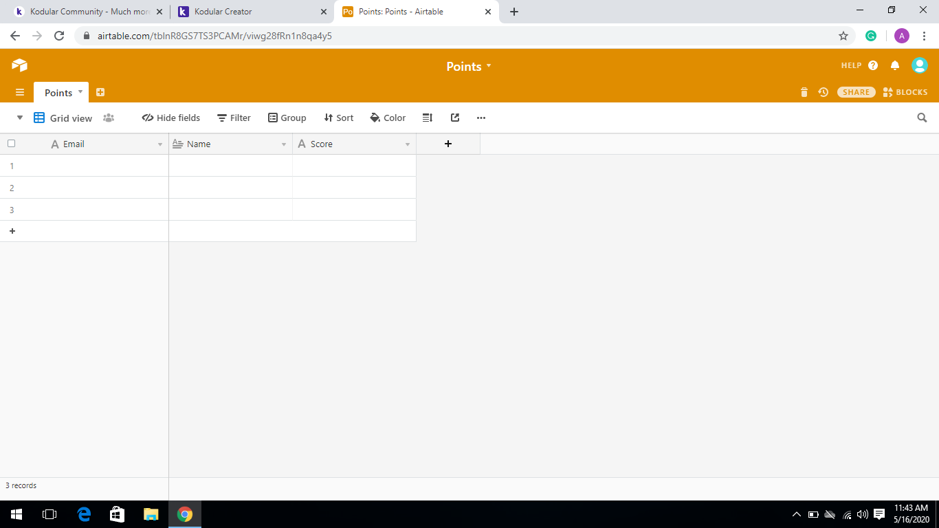 I want if some on click on submit button obtain score should be saved in my airtabele