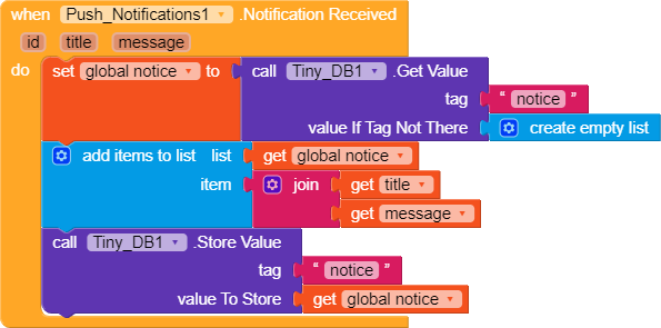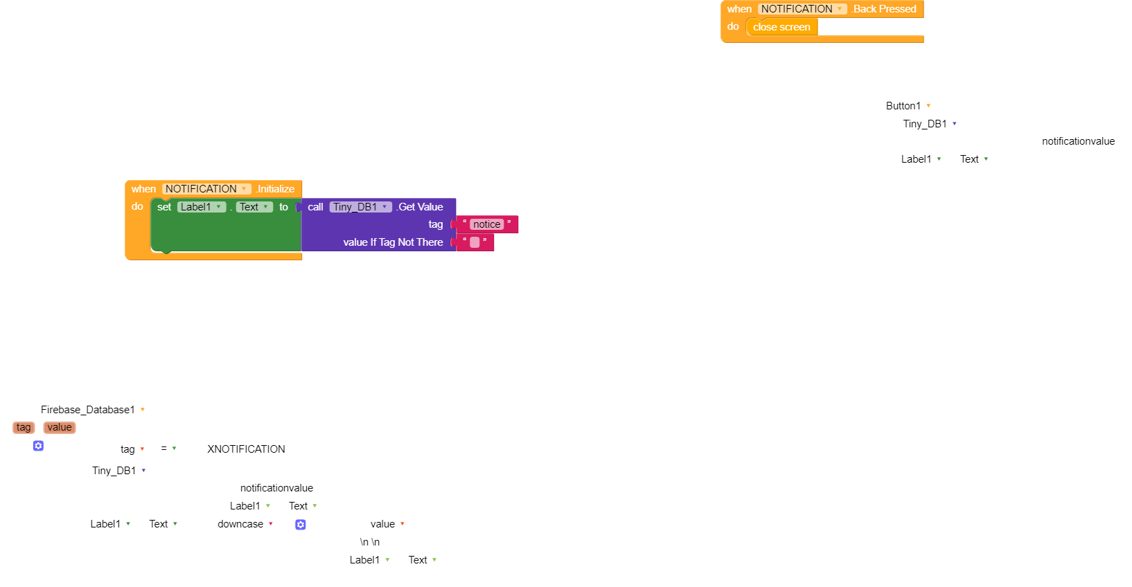 i added blocks as you said in screen one and on my notification screen i called βget valueβ of tinyDB on a label for experimenting if it is working on not. but nothings is working. label is not changing its text to the notification i sent from onesignal. if i am doing anything wrong please correct me. i am not so familiar with list component.