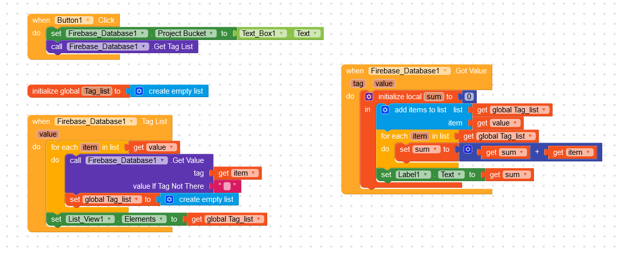 I want to show total sum of “value” from a firebase bucket not “Tag”