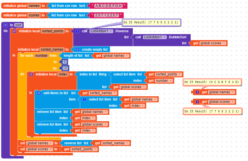 You can also make use of a list in a list. So at every position in the first list you have a list with a name and points, but in that case any lazy bubble sort extension won’t work.