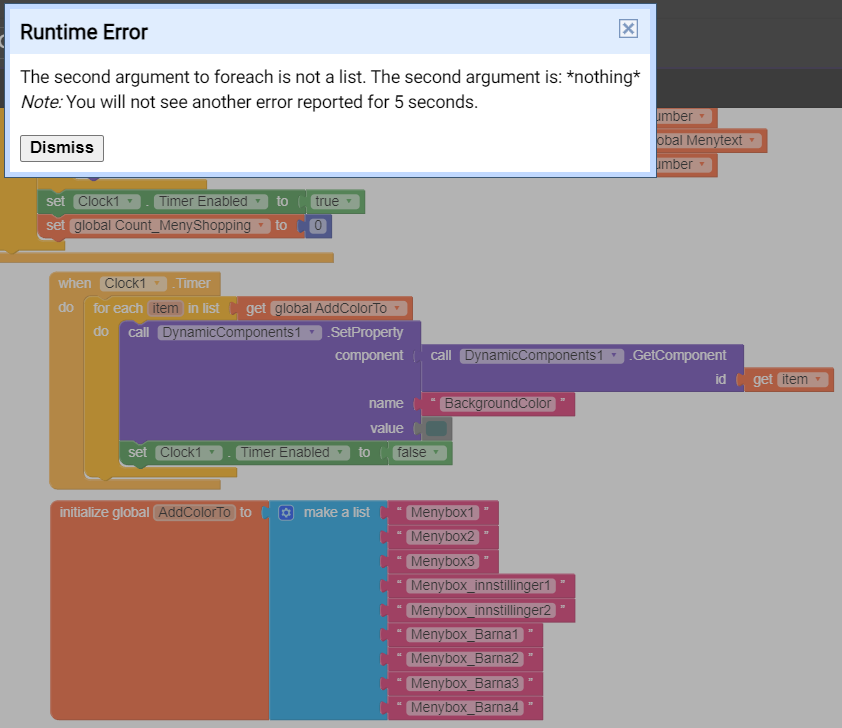 I don’t get the error when I only have 3 items in the list, but when I add more it’s “unstable” and works sometimes, sometimes not. It’s like it can’t add the colors fast enough?