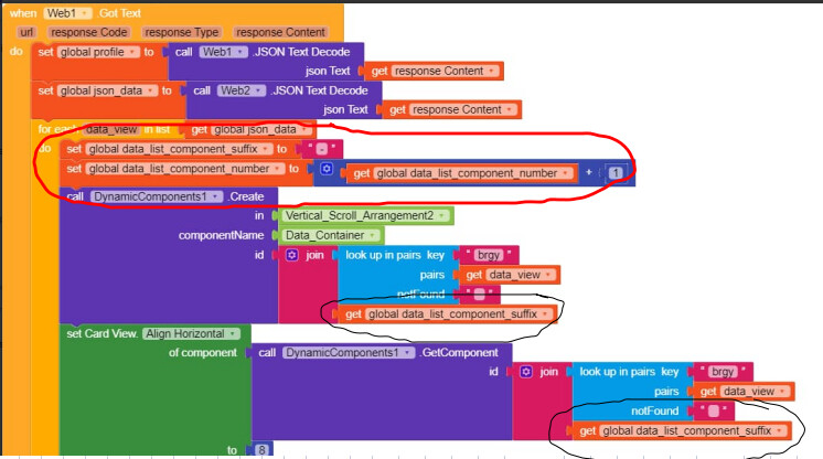 try to put the red mark above for each, because every loop you set global data_list_component_suffix it to “-” and that’s why the black mark always “-”.