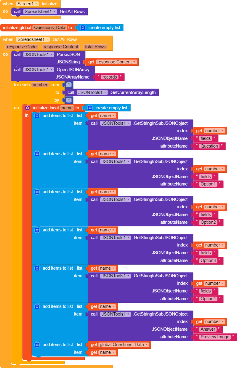 I want to load whole row at once so that I can use every single cell from that row and also randomize questions afterwards. I am doing this to use less component in my app.