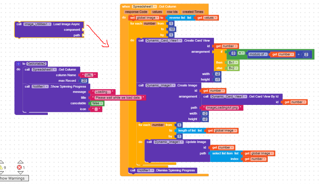 How do i use the image uitilites component, AsyncLoader to load the images from the database (firebase) where the URL of each image is indexed in a Airtable sheet.
