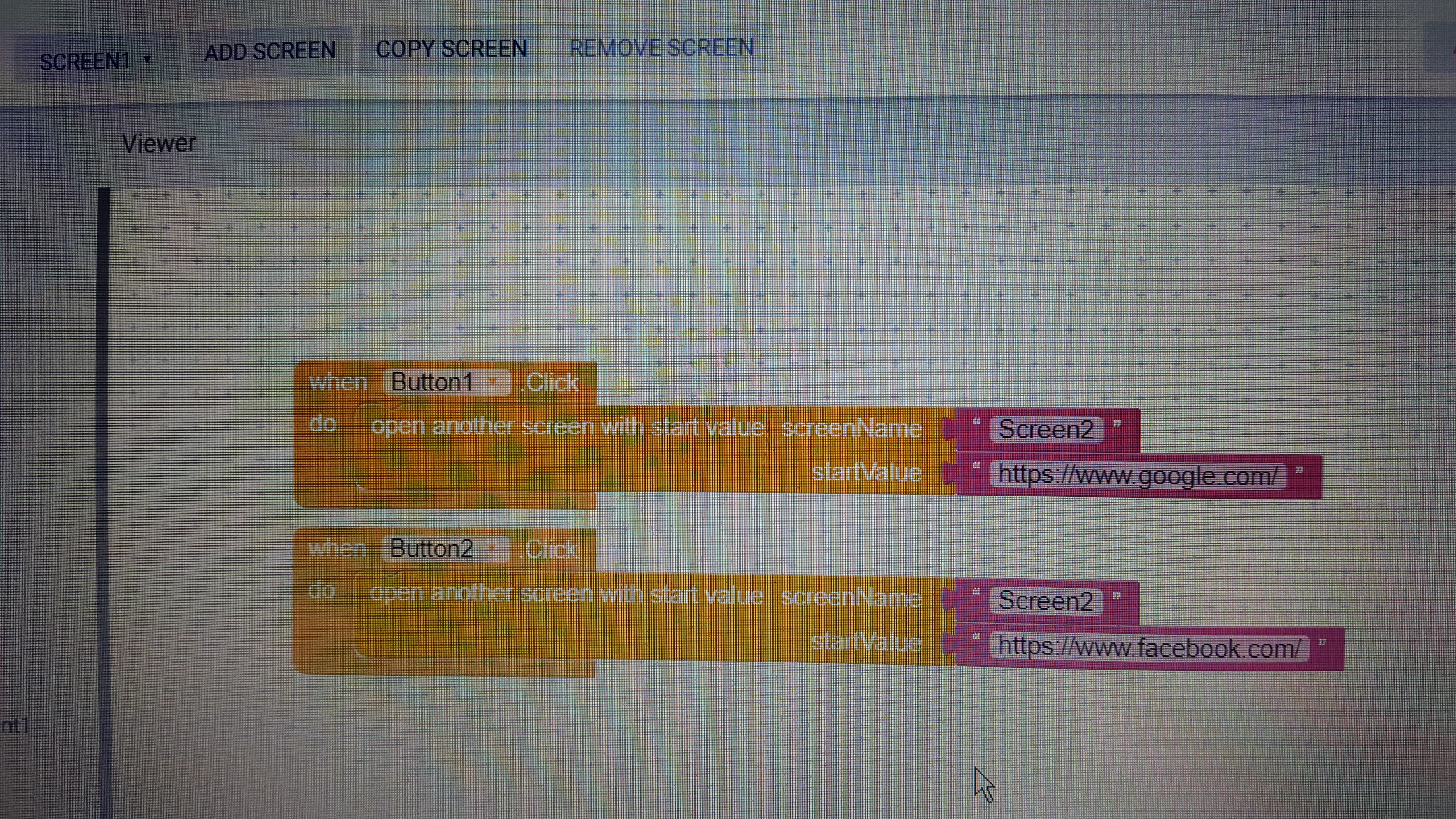 I want the when screen2 value taken from button1 so lable text change to Google &