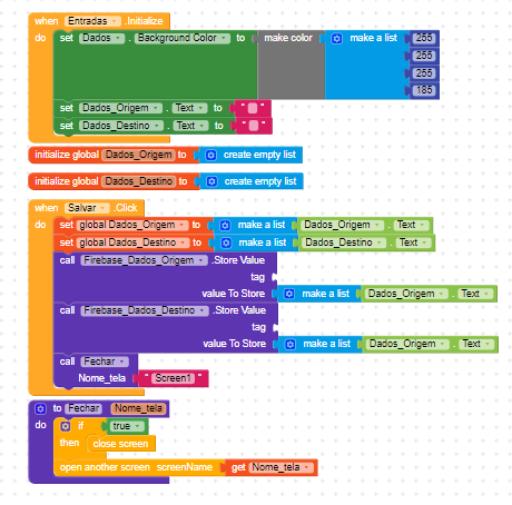 On the first screen, which I called “ENTRADAS”, I put two textbox and two firebase_batabase. I set both buckets as per the images below. How should I tag so I can use it on the next screen “MOVIMENTACAO”?
