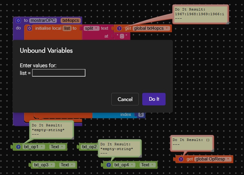When i use Do it, then no result message comes up and just appears an Unbound Variable notification