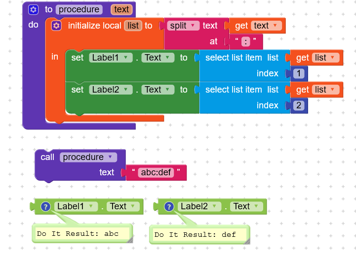 My text list comes from another part of my code and it provides rightly the text to split at :