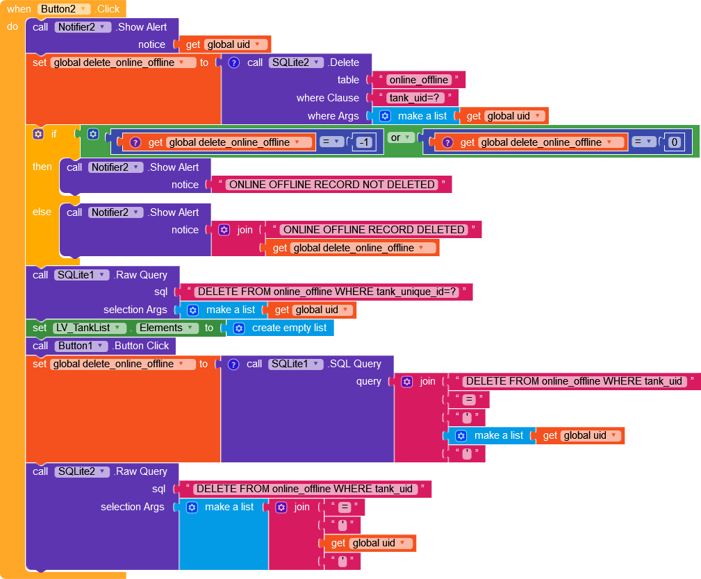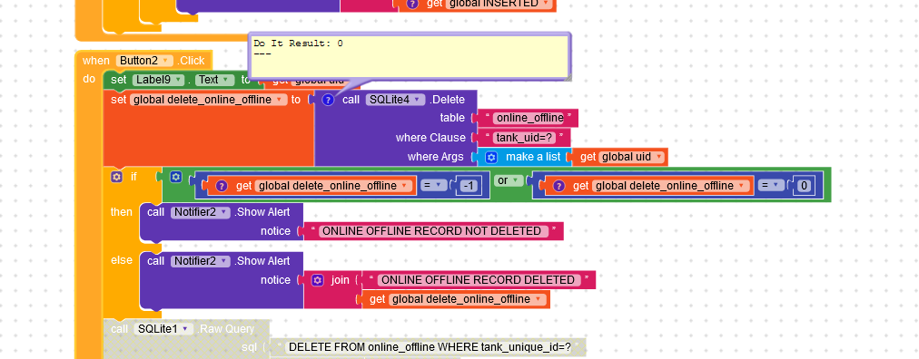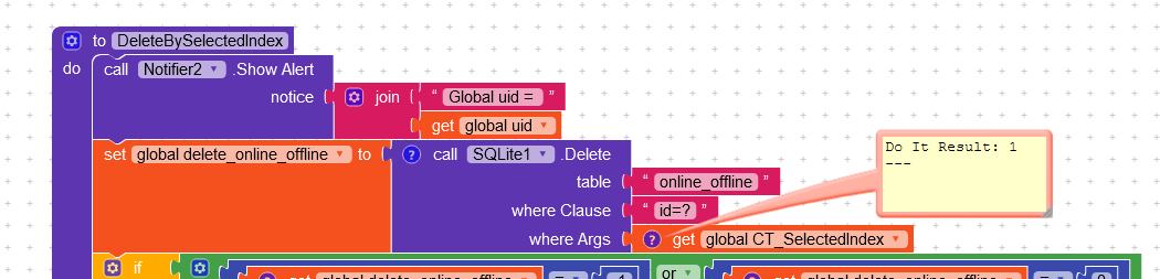 Put the if then and call components in a block, like you have done in SQlite1 after query
