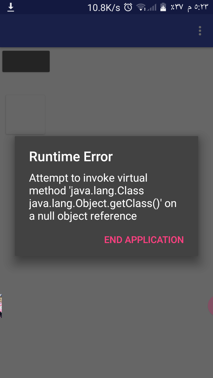 Attempt to invoke virtual method ‘java.lang.Class java.lang.Object.getClass()’ on a null object reference