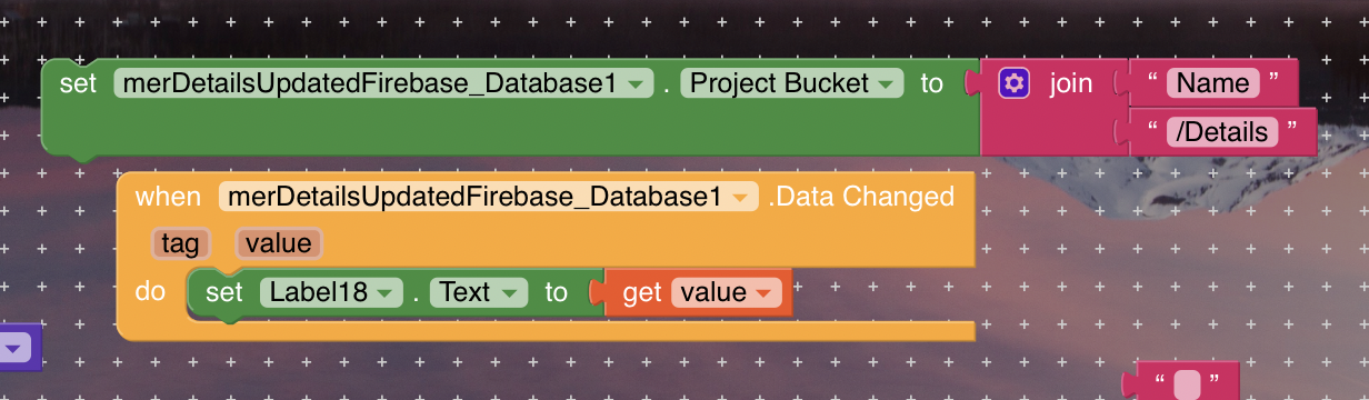 With this block when data chaged, it will give you the total firebase value but you can take only the specific child value alone by using firebase bucket .