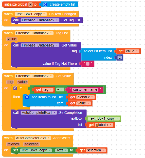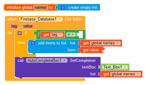 ( As Shown in MIT screenshot don’t try to add the set completion in initialise event because you ddint have the require list. After getting data from firebase only you must set it. I hope you get the point)